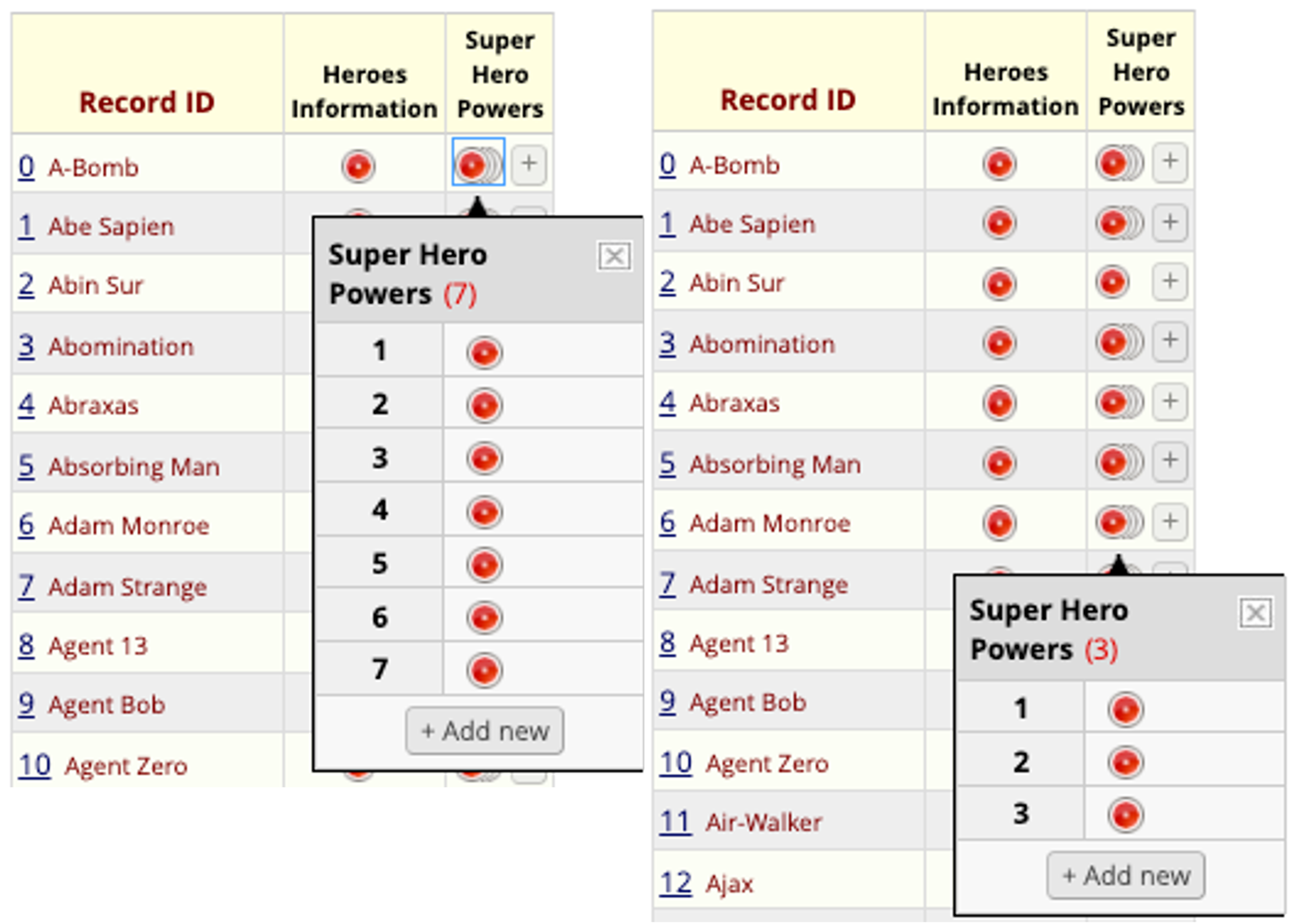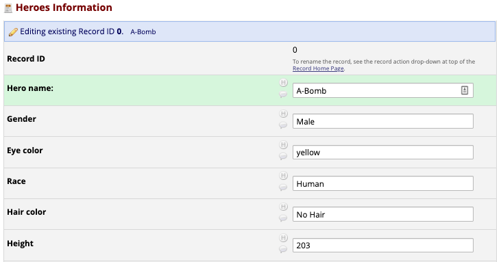 | record_id | redcap_repeat_instrument | redcap_repeat_instance | name | gender | eye_color | race | hair_color | height | weight | publisher | skin_color | alignment | heroes_information_complete | power | super_hero_powers_complete |
